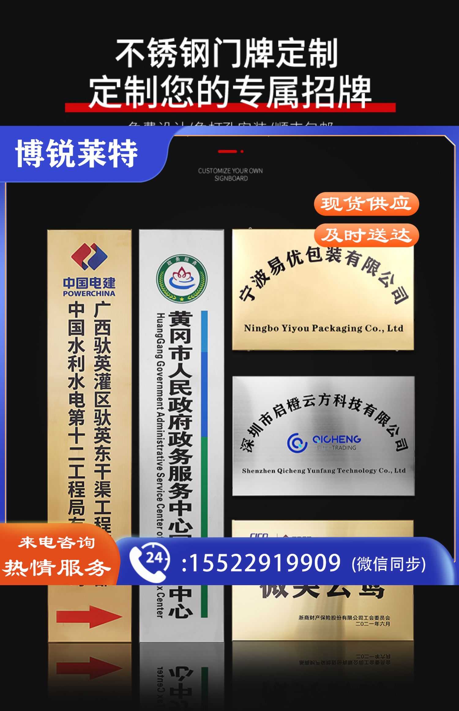 不锈钢 公司门牌定制 广告招牌子铭牌匾制作 30x40cm不锈钢/钛金(腐蚀) 颜色留言备注