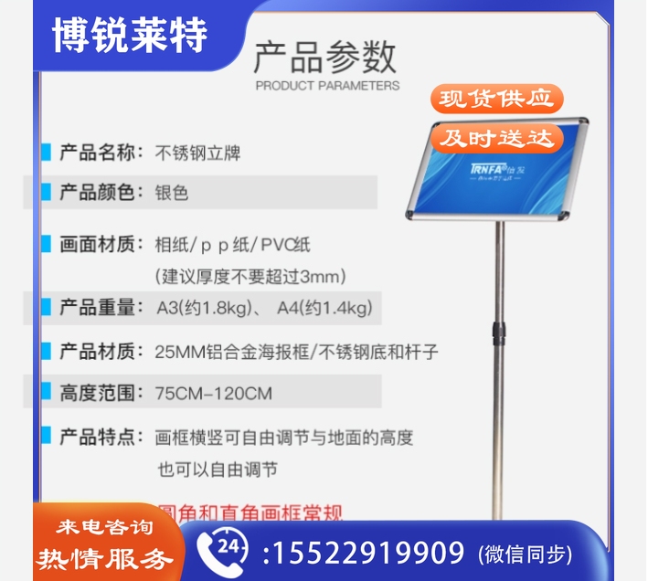 国为(COUVEZI) 不锈钢可伸缩立牌展示牌水牌展示架立式广告牌指示牌引导牌支架迎宾牌 A3银色直角