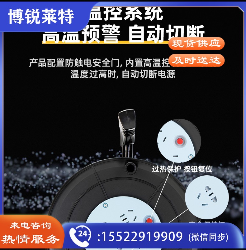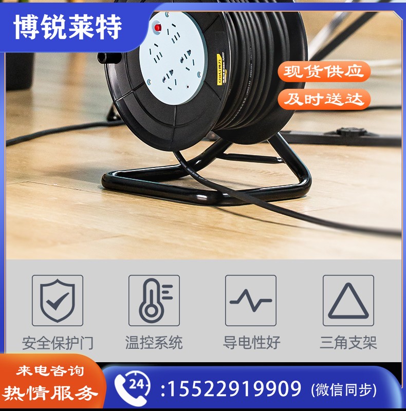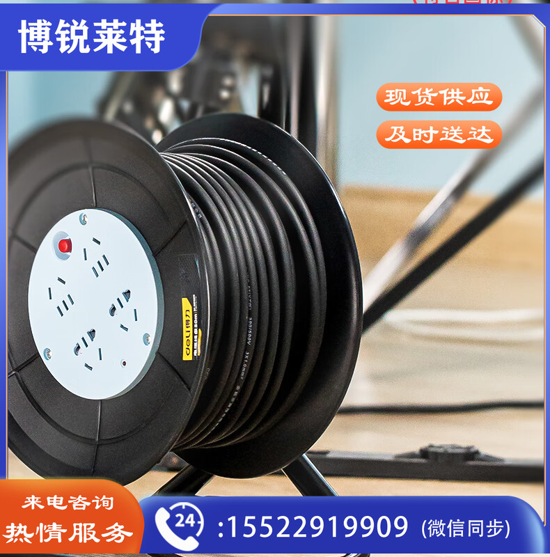 得力(deli)工程接线盘移动电缆盘电线盘拖线盘卷线盘过热保护4位30m