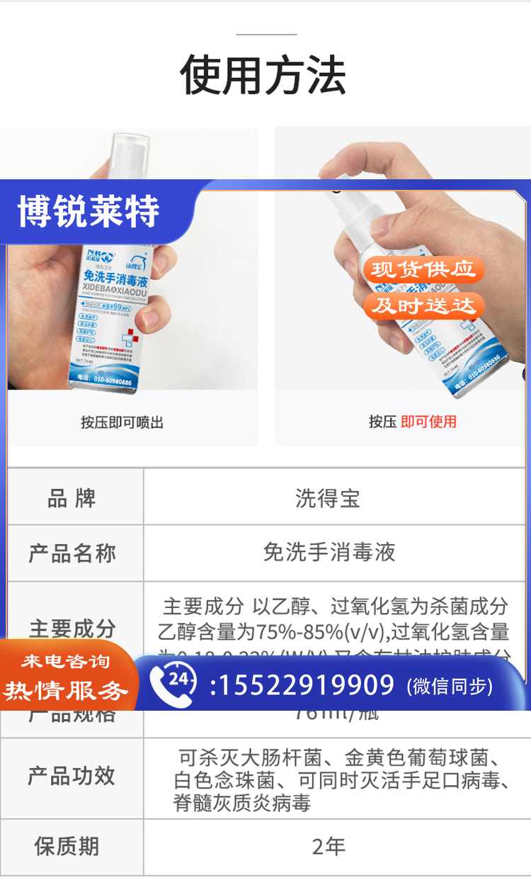 洗得宝洗得宝 75%酒精免洗洗手液 免洗手消毒液76ml 居家办公学校便携