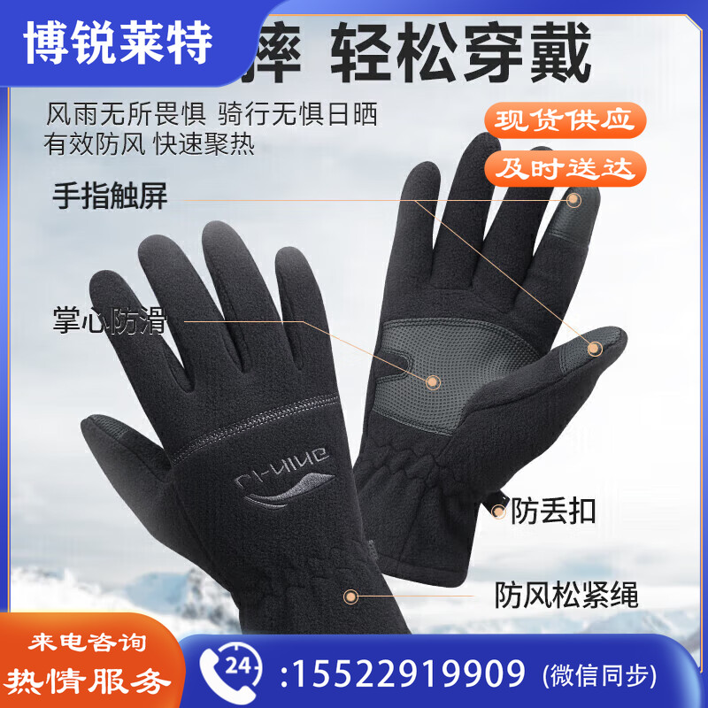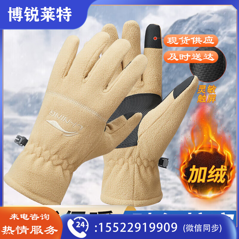 李宁手套男骑行防风防寒滑雪登山户外运动钓鱼自行摩托触屏