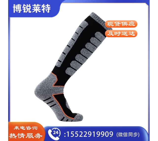 冬季长筒滑雪袜专业登山袜男女款户外徒步袜毛巾底厚款保暖运动袜 灰色 均码