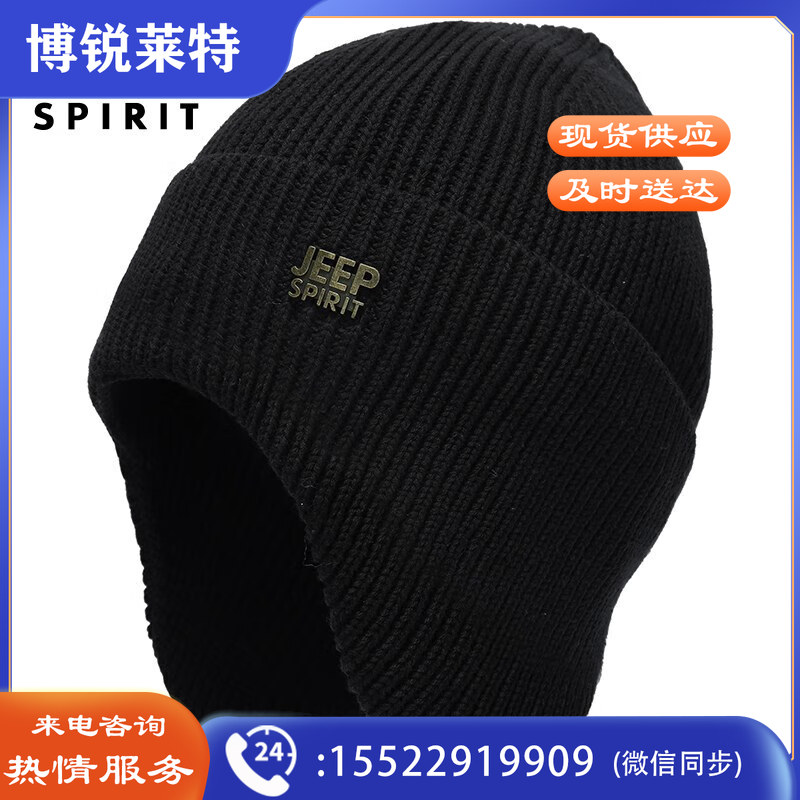 吉普(JEEP)帽子男士毛线帽秋冬季加绒保暖针织帽防风护耳防寒冬帽A0634