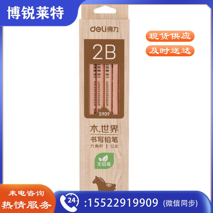 得力 S909 2B书写铅笔(原木色)(12支/盒)