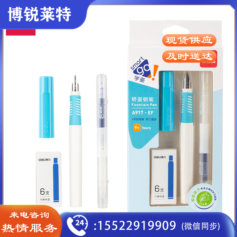 得力A917矫姿钢笔(可擦纯蓝/笔壳浅蓝)