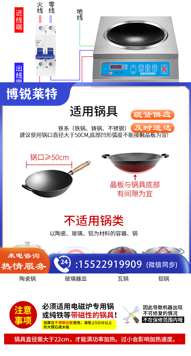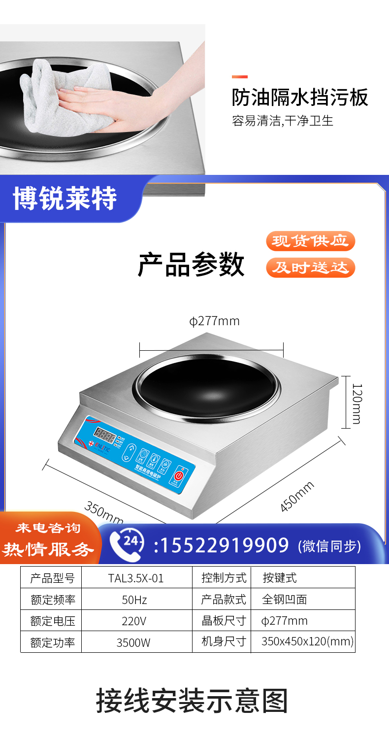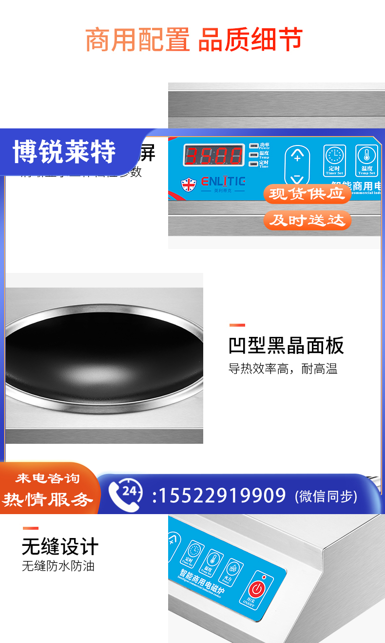 英利蒂克(Enlitic) 商用电磁炉 大功率家用电磁灶 3500w爆炒电池炉不锈钢电炉食堂酒店厨房用 RM-TAL3.5X-01