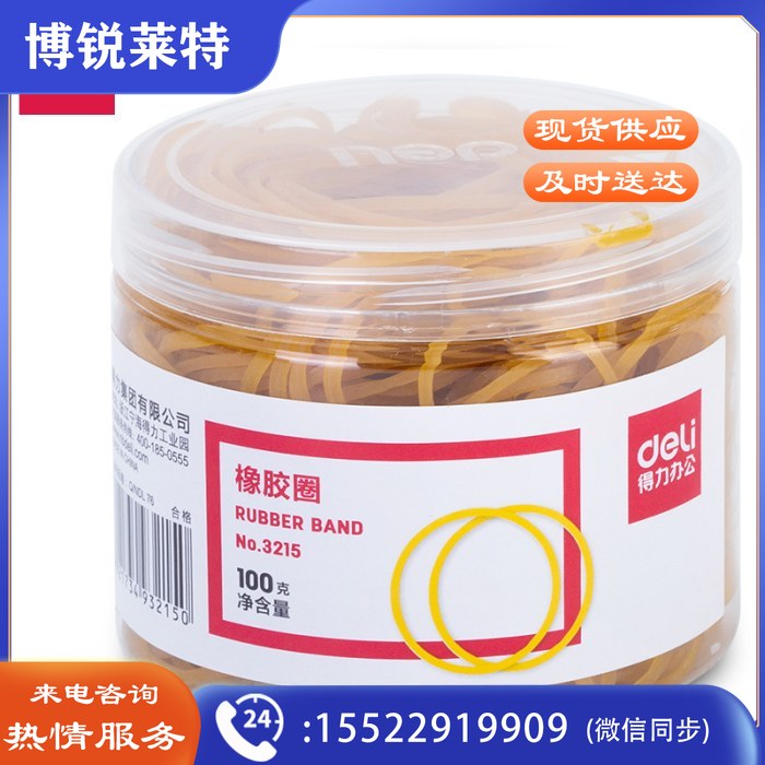 得力(deli)高韧性高强度橡皮筋橡胶圈 100g/筒 反复拉伸不易断 3215