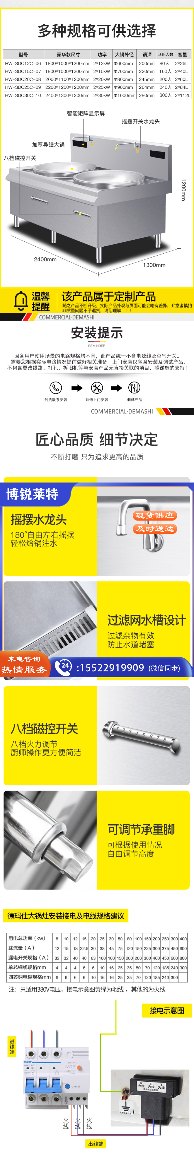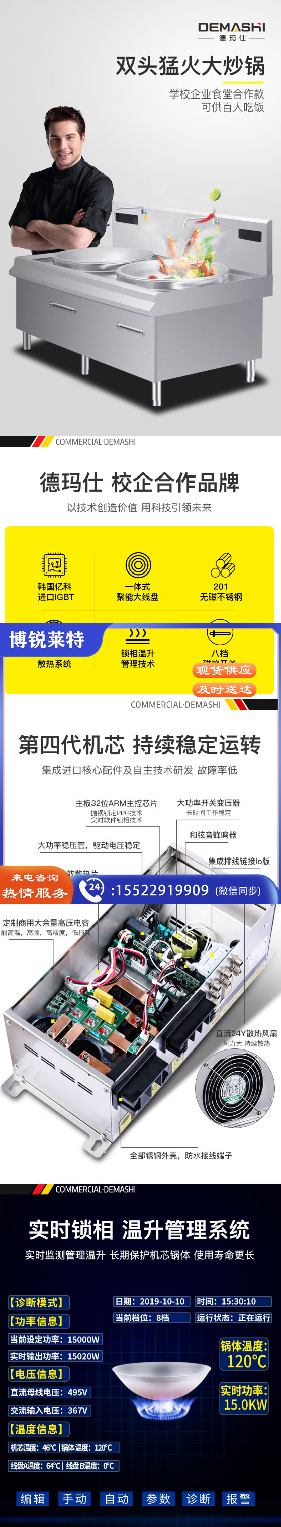 德玛仕(DEMASHI) HW-SDC20C-08(304材质) 大功率商用电磁炉 电磁大锅灶台学校食堂酒店 双头大炒锅20kw*2