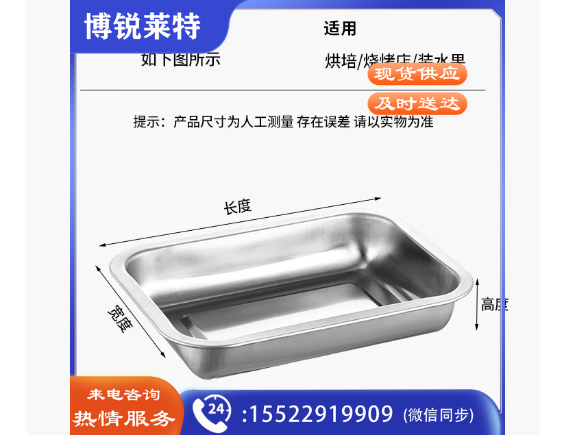 饭店食堂用不锈钢方盘子 加厚304不锈钢盘子 0843,尺寸60*40