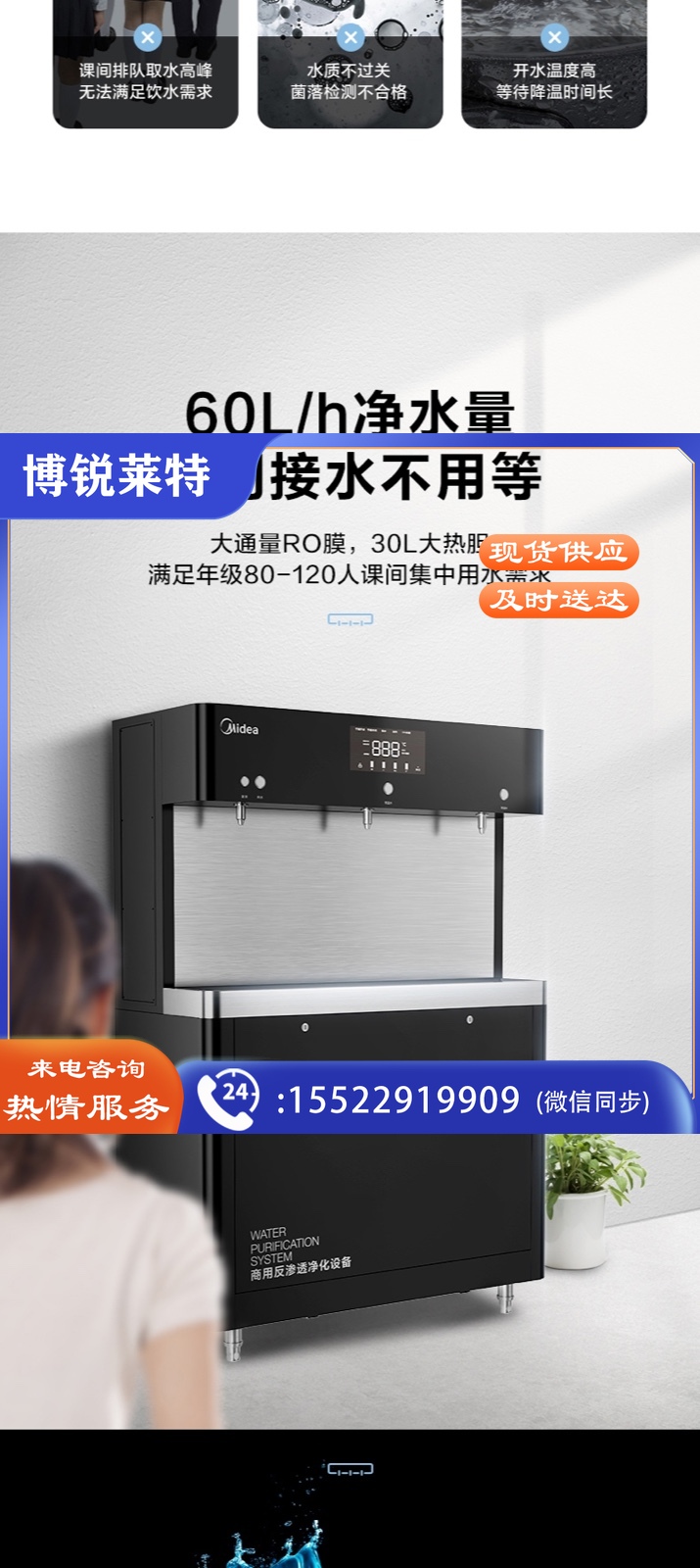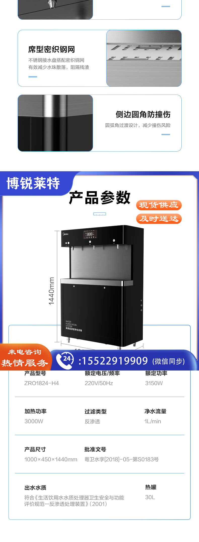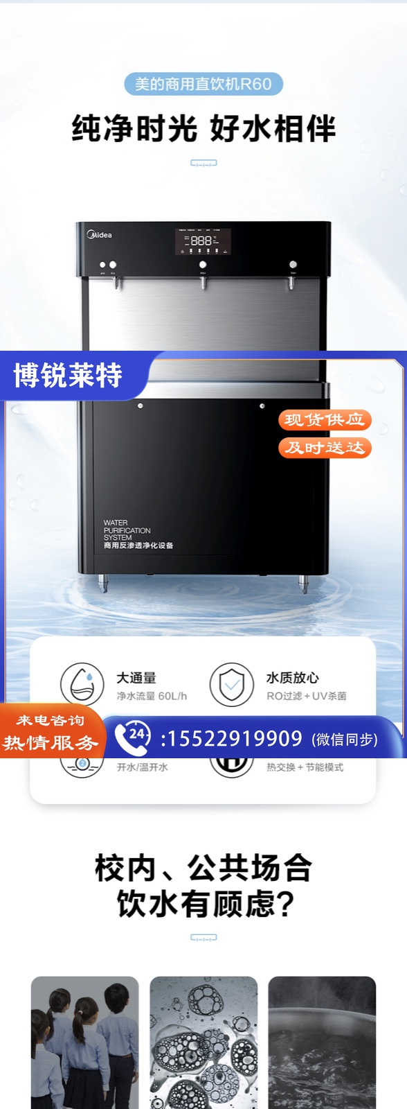 美的(Midea)ZRO1824-H4(R60) 商务净饮机饮水机一体直饮机加热降噪防冻学校宿舍机场食堂适用 【3出水龙头 】ZRO1824-H4(R60)