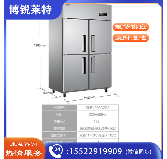 海尔(Haier)商用厨房冰柜980升全冷藏冷冻双温冰箱 店饭店餐厅食堂保鲜不锈钢橱柜冷柜SLB-980C2D2