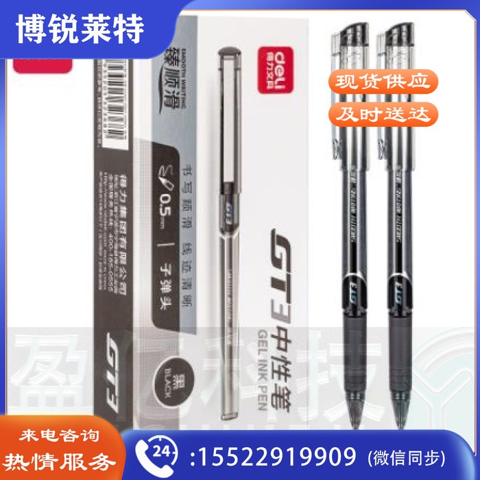 得力GT3办公中性笔0.5mm臻顺滑子弹头(黑)(支)