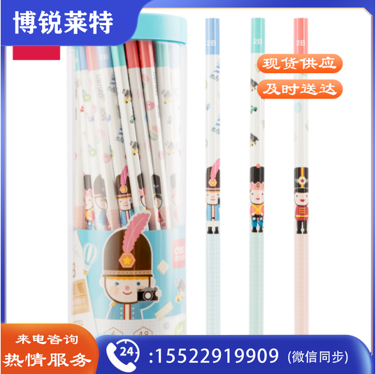 得力33331桶装2B铅笔(原木色)(48支/桶)