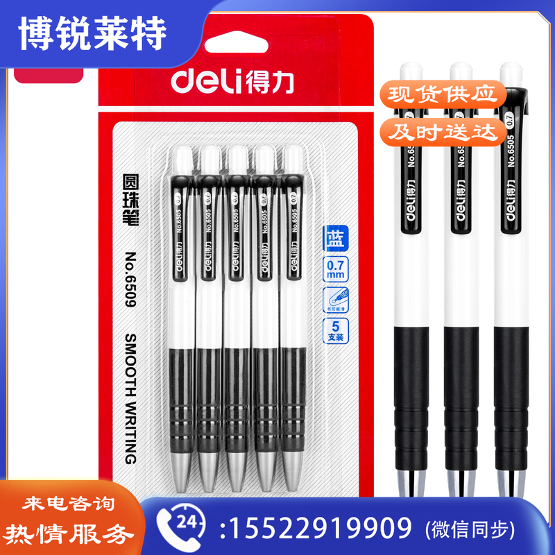 得力6509圆珠笔0.7mm子弹头(蓝)(5支/卡)