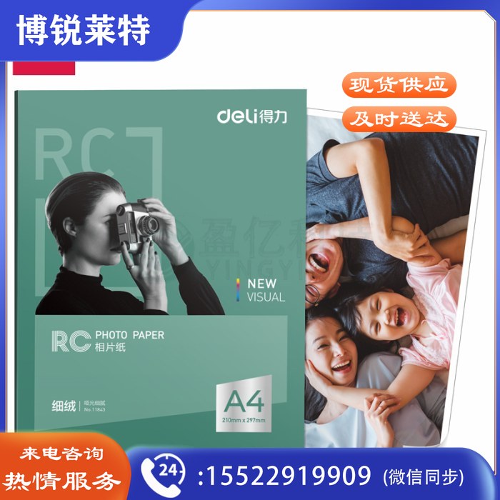得力11843细绒RC相片纸-A4-260g/㎡(白)210*297mm (20张/盒)