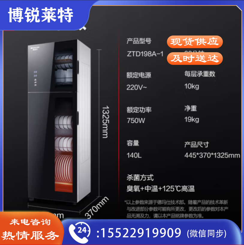 德玛仕(DEMASHI)消毒柜 家用 立式 小型消毒碗柜 大容量高温碗筷消毒柜 双开门商用厨房茶杯 ZTD198A-1