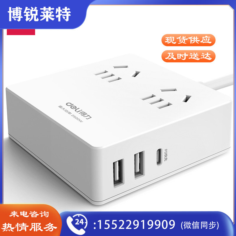 得力33650(1.5)插座_2组+3U_1.5米_PET盒装(白)(只)