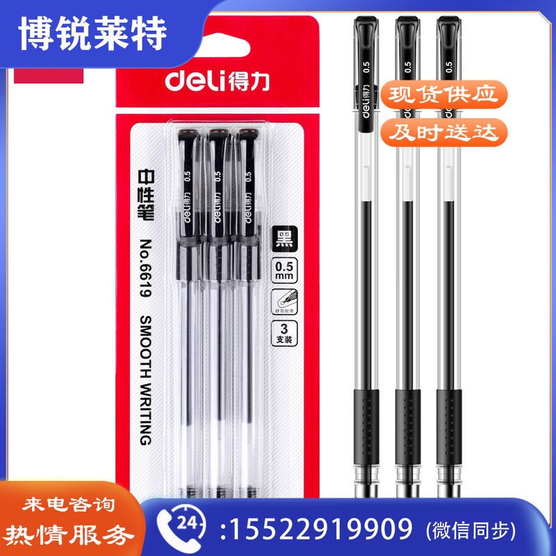 得力6619中性笔0.5mm子弹头(黑)(3支/卡)