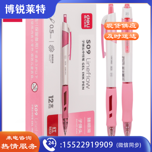 得力(deli) 臻顺滑办公中性笔 0.5mm 弹簧头 S09 红色