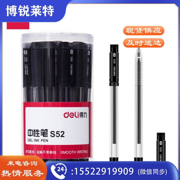 得力 S52 0.5mm中性笔 30支/桶 (单位:桶) 黑