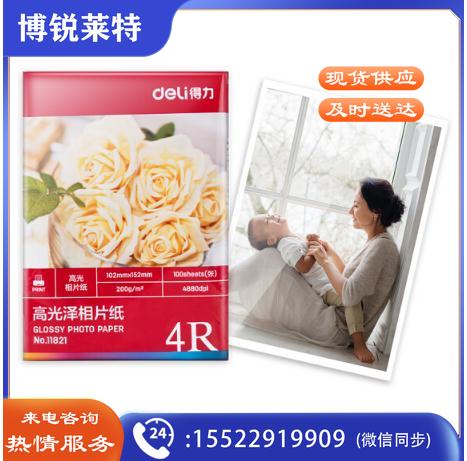 得力 11821 相片打印纸 6寸 200g高光面照片纸 100张/包