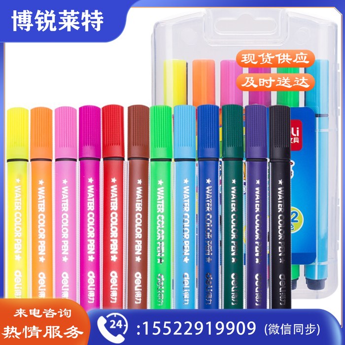 得力 DELI 70656可水洗12色水彩笔绘画笔粗三角杆盒装