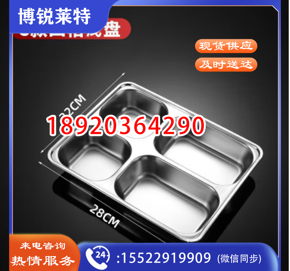 今万福 304不锈钢餐盘 食堂成人分格餐盘C款四格加厚浅盘单位打饭盘无盖