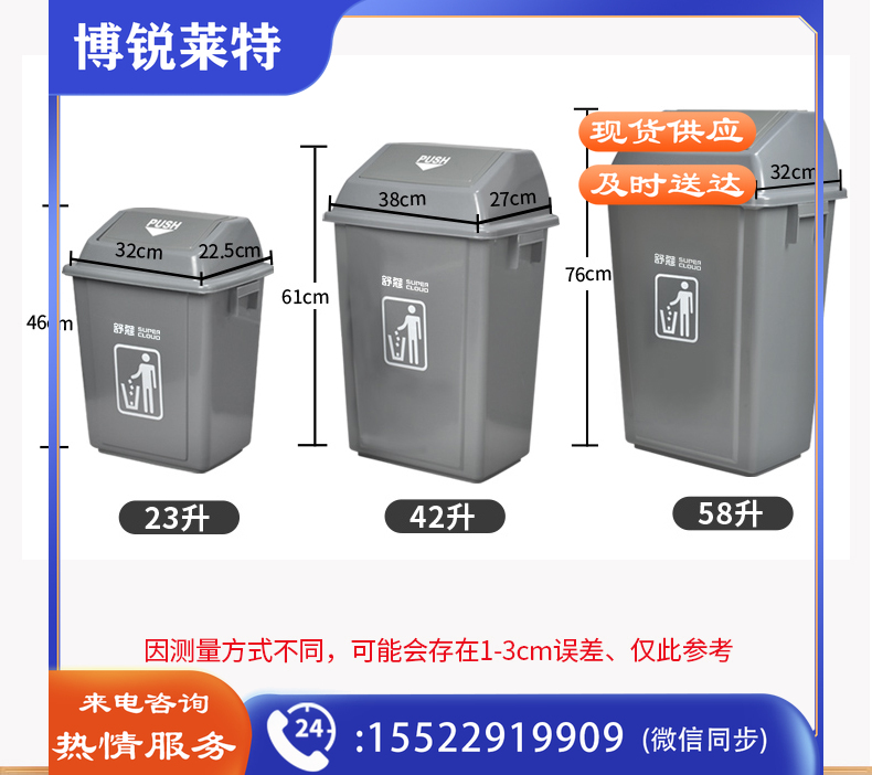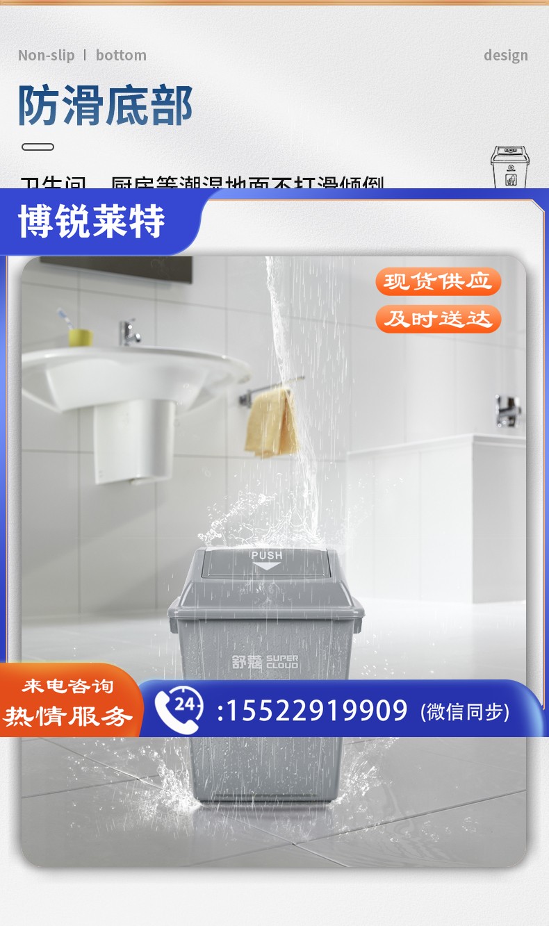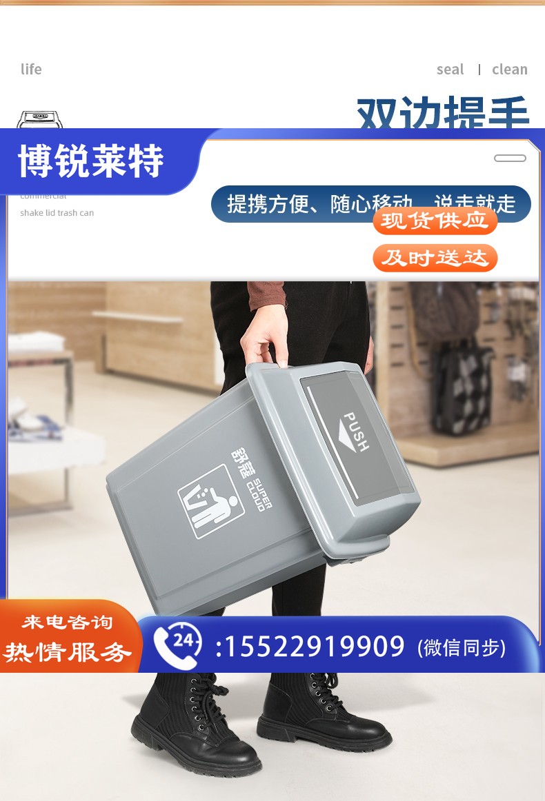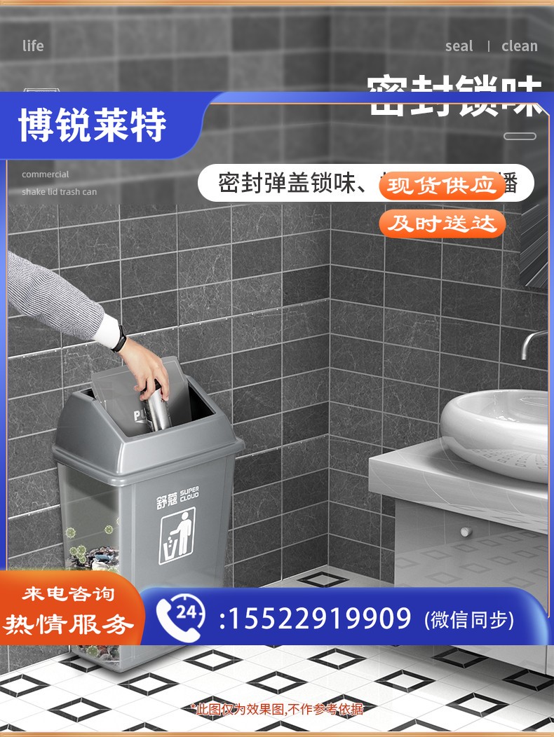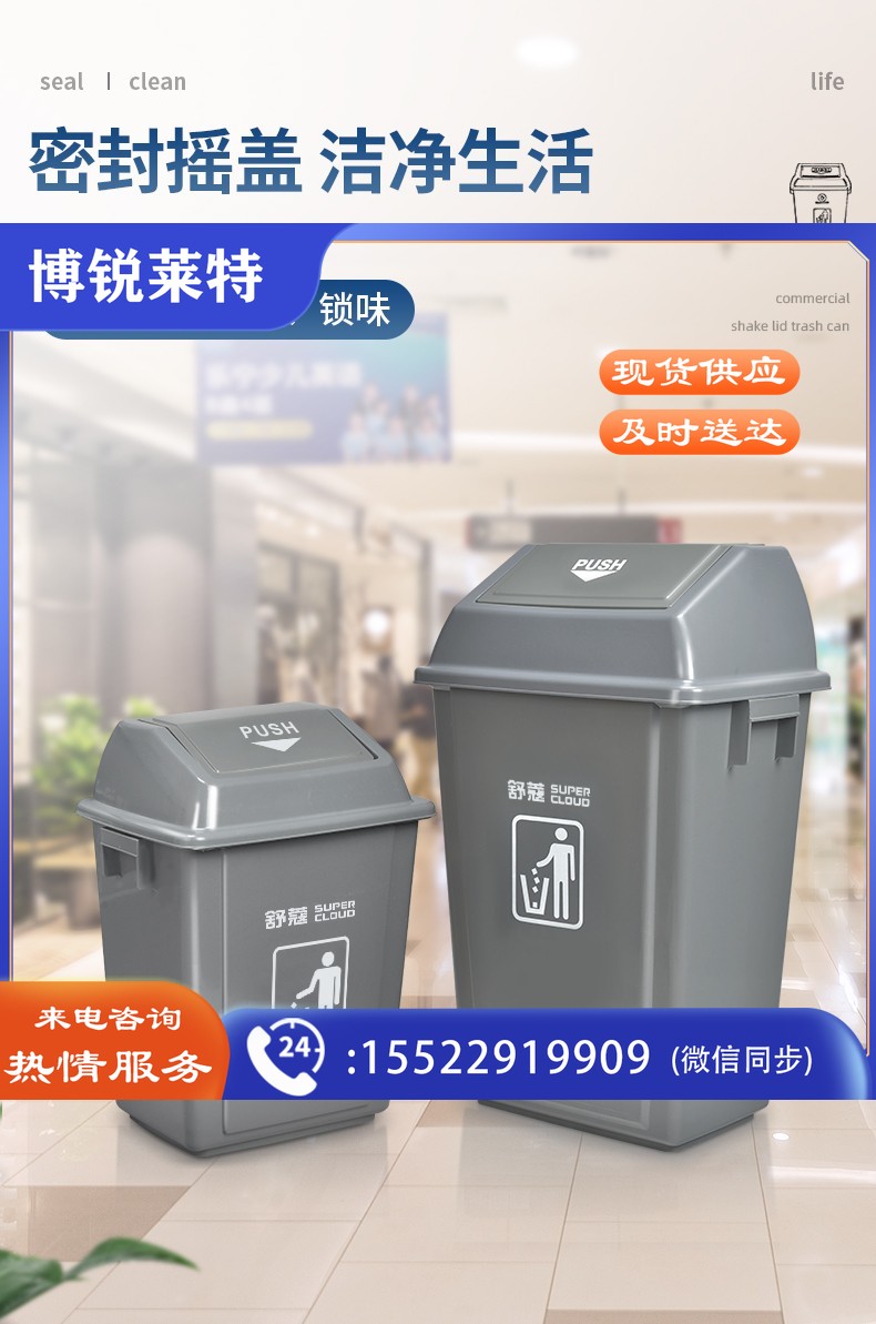 Supercloud(舒蔻)大垃圾桶商用大号垃圾桶带盖户外餐饮学校物业果皮箱办公室公共场所翻盖垃圾箱 灰色58L