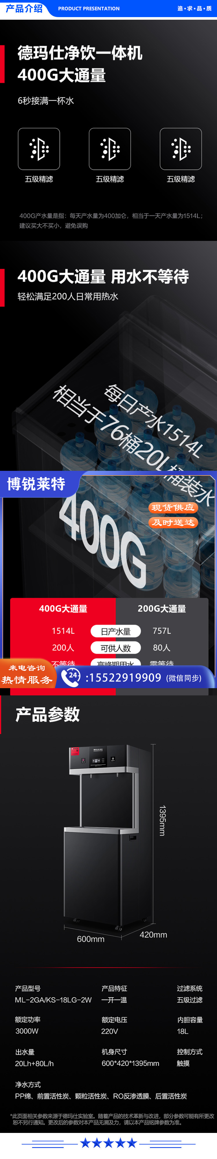 德玛仕 DEMASHI ML-2GA/KS-18LG-2W 直饮水机 商用学校烧水机 学校用开水器 不锈钢直饮机商用净水器