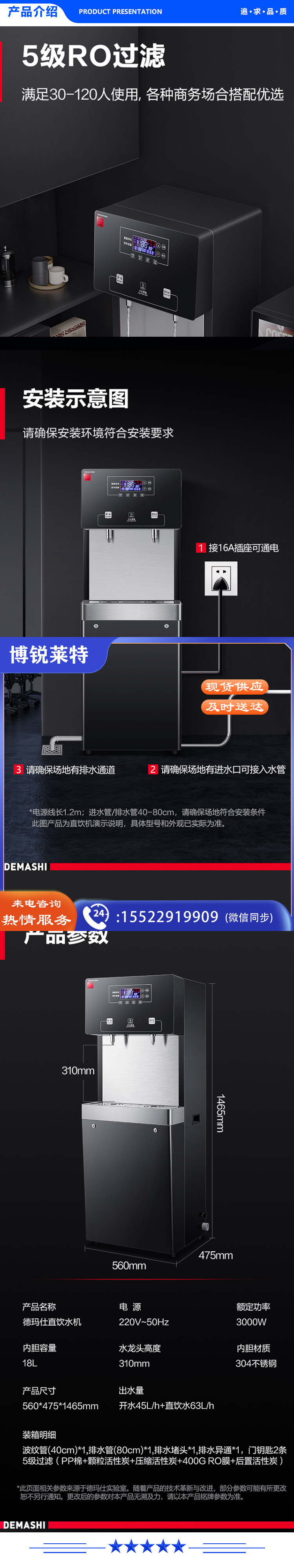 德玛仕 DEMASHI SRZ-30/SRZ-2L-L7 直饮水机 商用净水器 学校用开水器 商用烧水机 一开一净