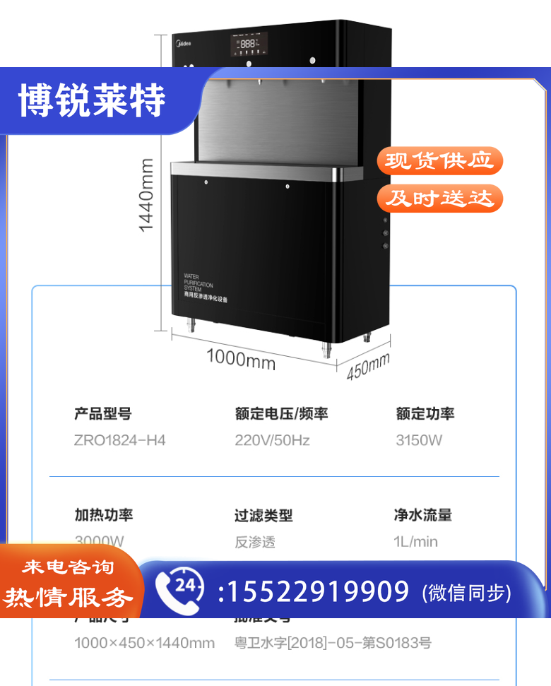 美的 商用净饮三龙头加热一体机 学校宿舍机场食堂适用 ZRO1824-H4(R60)