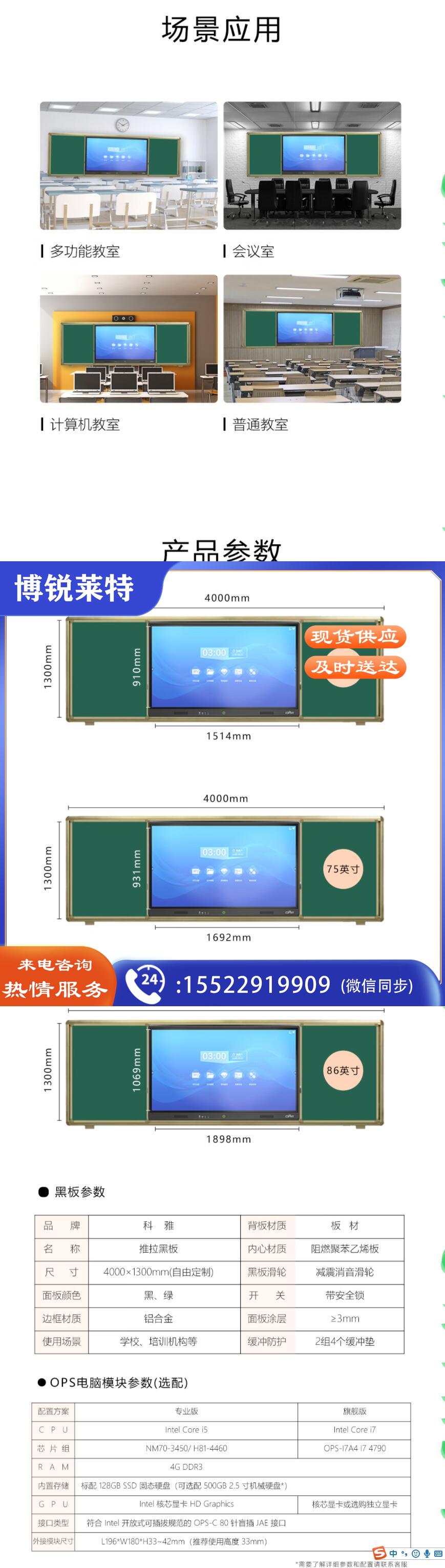 科雅(KEHYA)98英寸智慧推拉黑板教学一体机触屏智能电子白板学校多媒体教室设备双系统i7