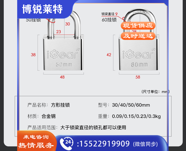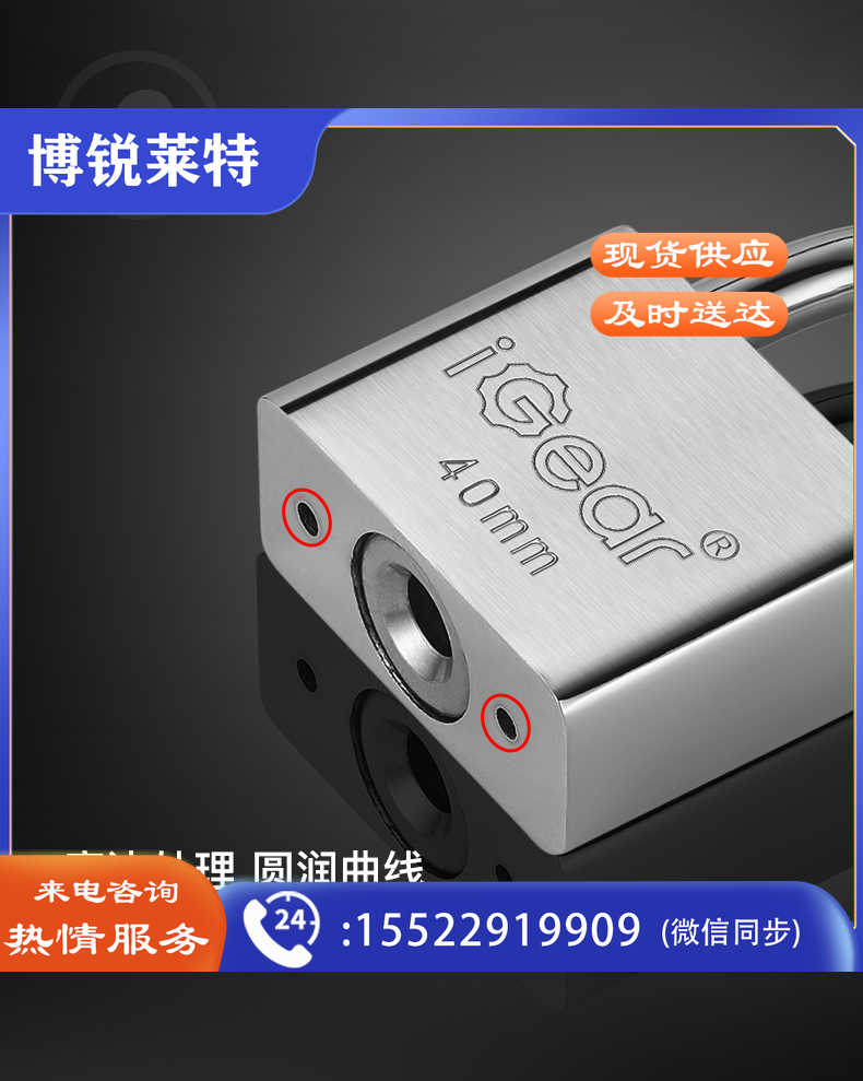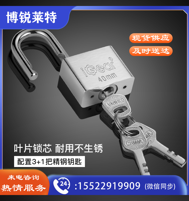 iGear 挂锁 防水防锈仓库车厢大门挂锁 家用学校商铺门锁 防盗防撬锁 40mm