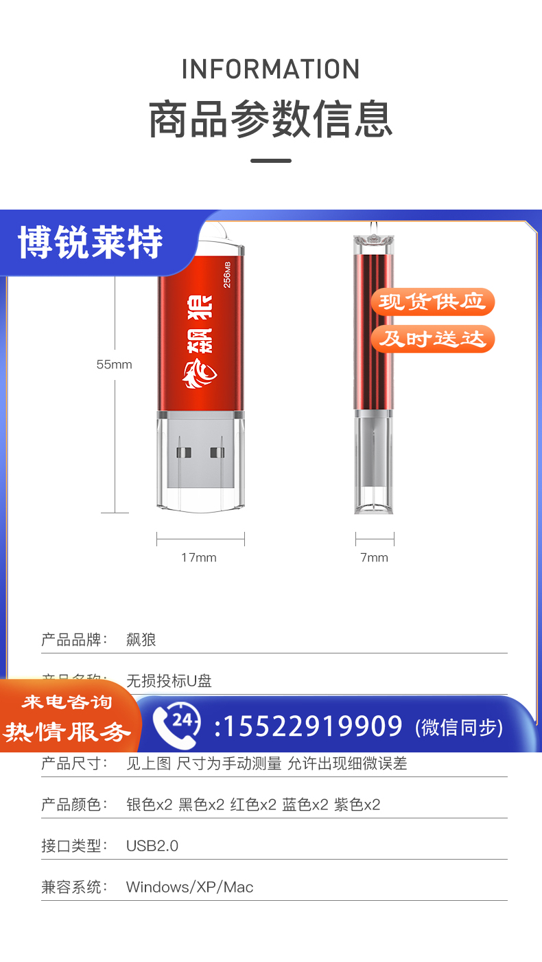 飙狼 256MB USB2.0 U盘 BL-10系列专业招标u盘 学校公司企业办公 投标小容量标签无损电脑U盘10个/盒
