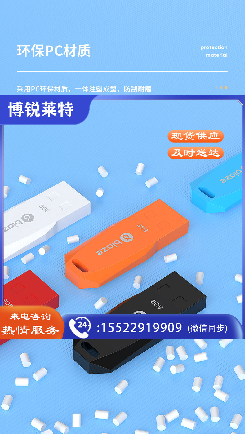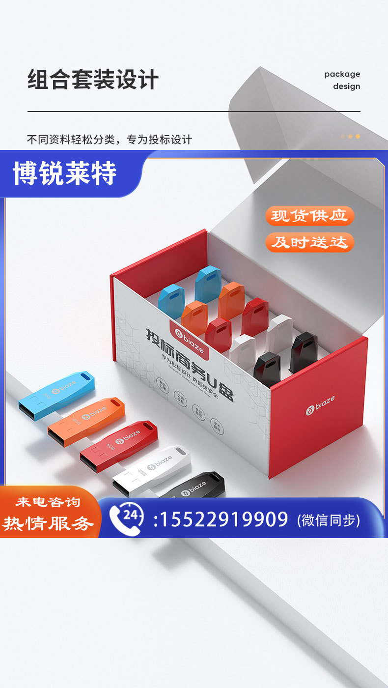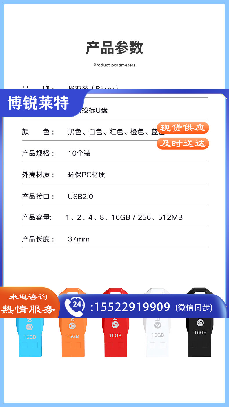 毕亚兹 8GB USB2.0 U盘 UP018系列 支持量产 专业投标u盘 学校公司企业 投标小容量无损电脑优盘10个/盒
