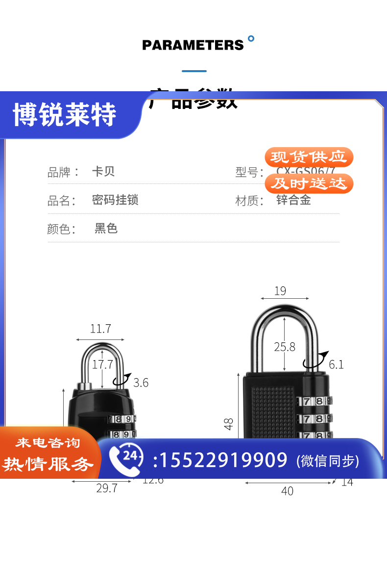 卡贝密码挂锁全金属户外防水防锈大门锁工具行李箱密码锁健身房学校学生柜子抽屉扣锁