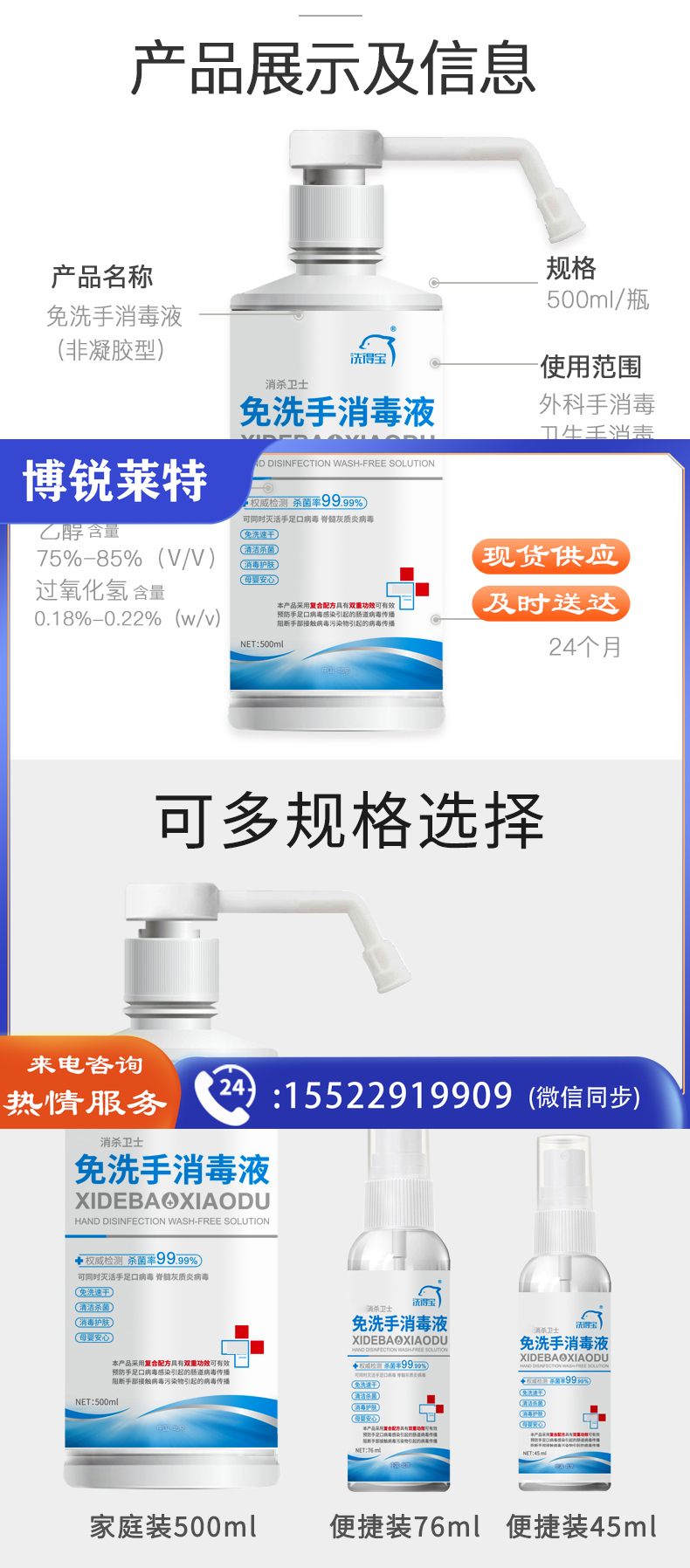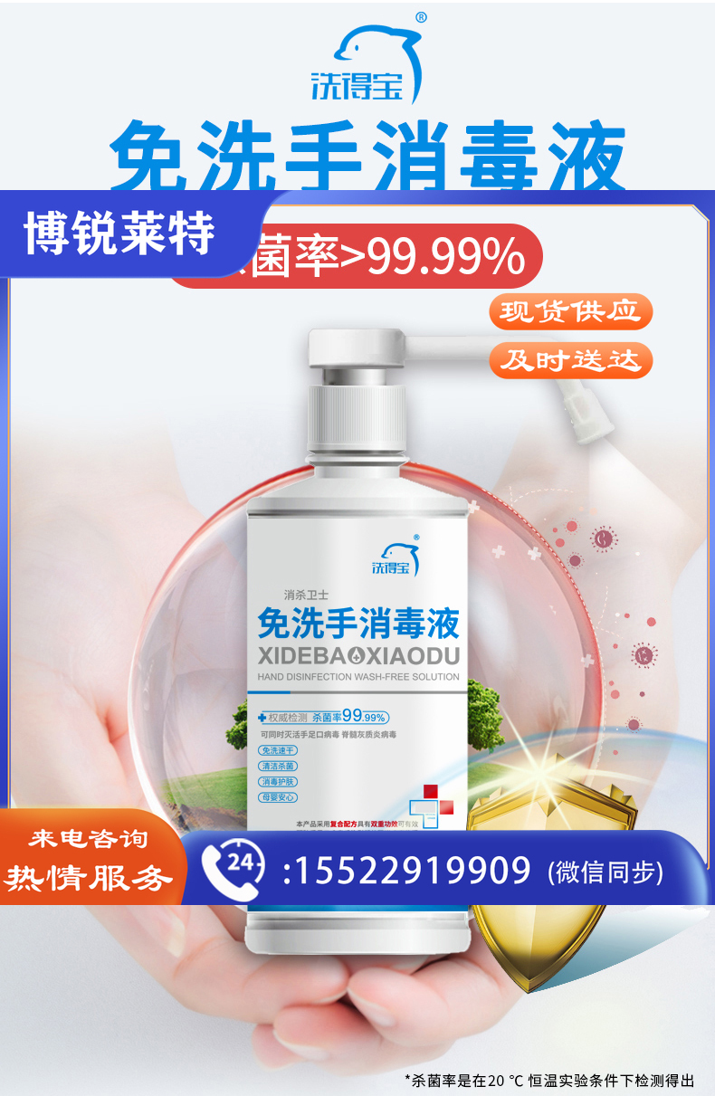 洗得宝 75%酒精免洗洗手液500ml 乙醇免洗酒精手消毒液居家办公学校