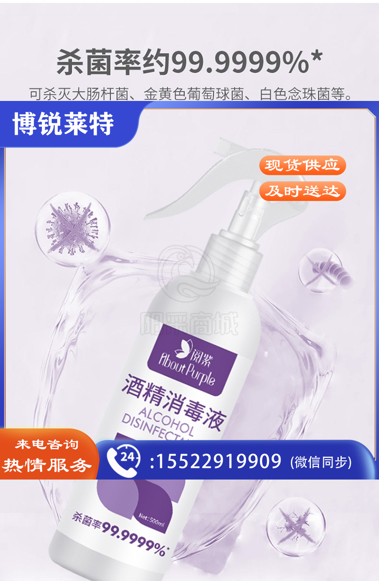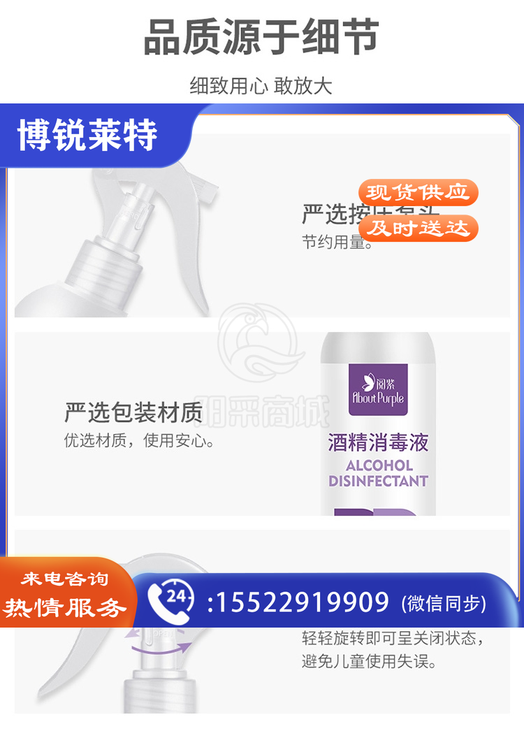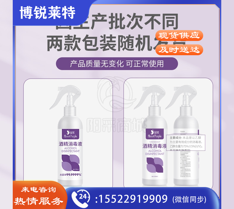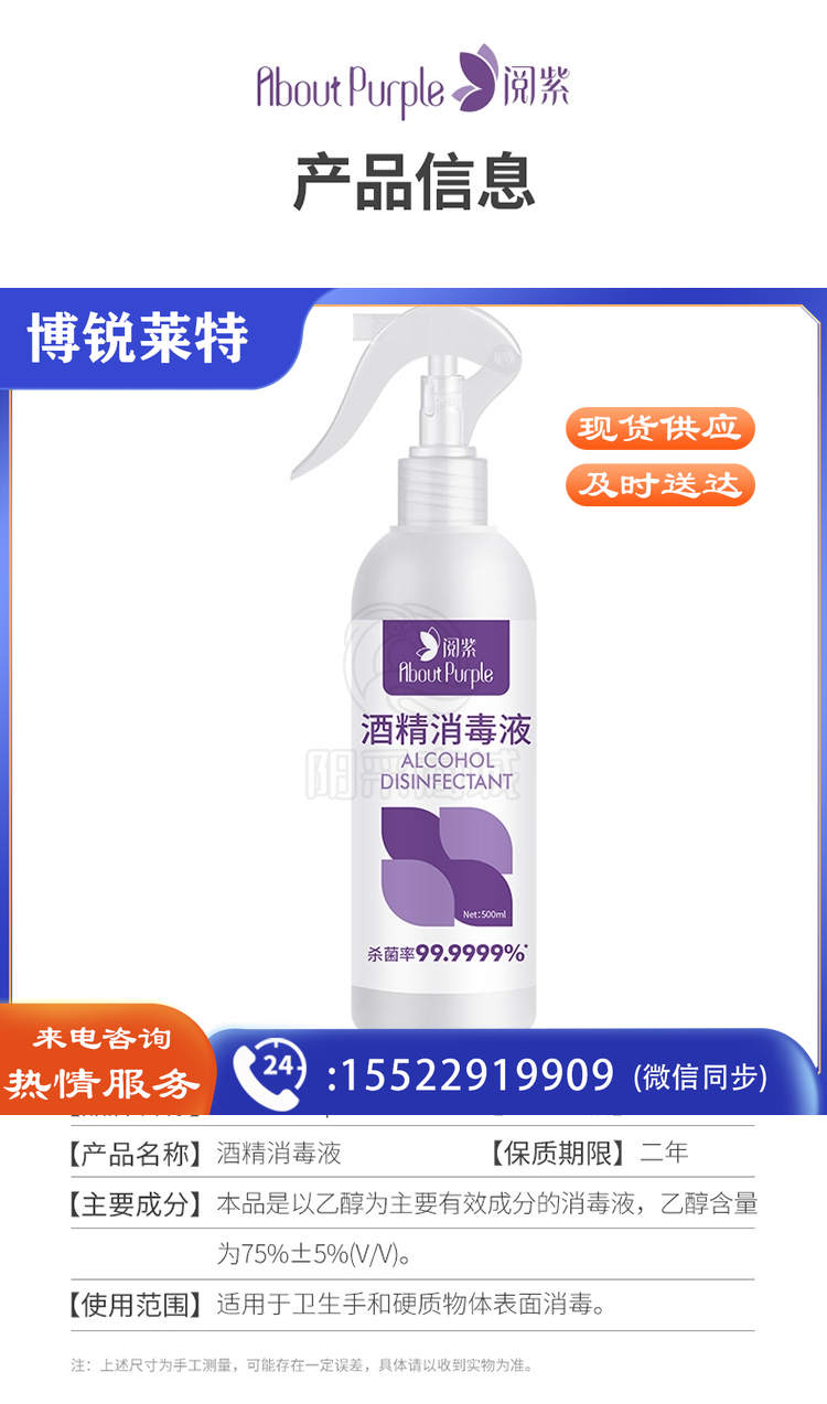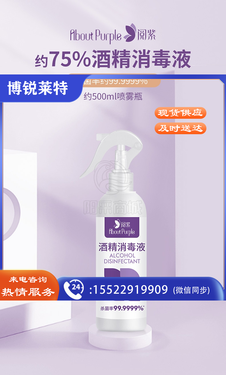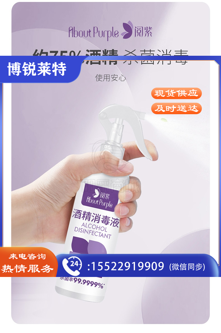 阅紫 75%酒精喷雾500ml喷壶款+100ml旋盖+100ml喷雾 乙醇免洗手酒精消毒液 工业车间办公学校杀菌99.999%