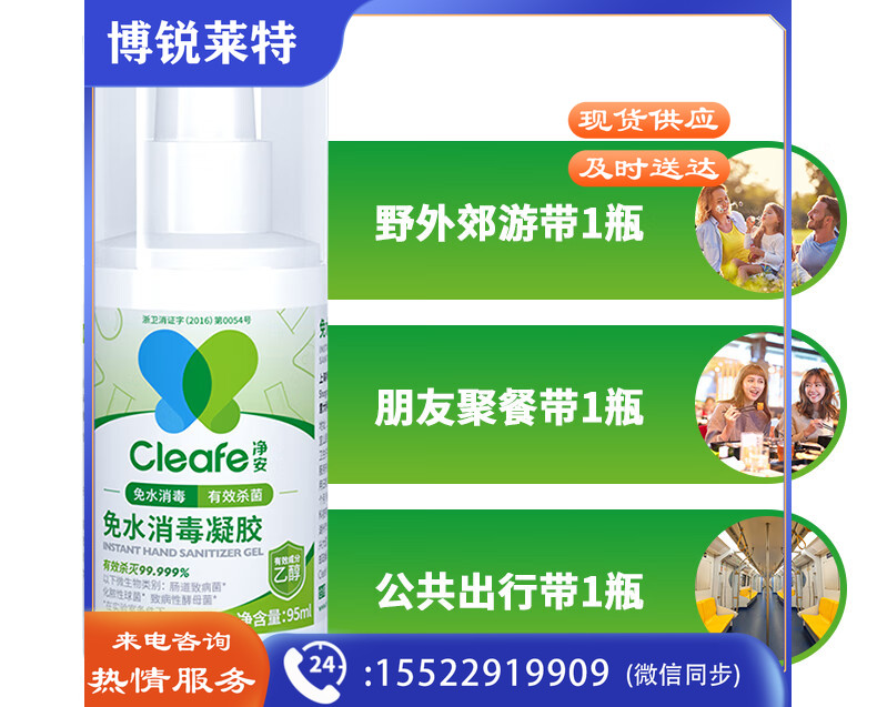 净安免洗洗手液酒精免洗消毒凝胶便携式儿童办公学校酒精杀菌95ml*3瓶