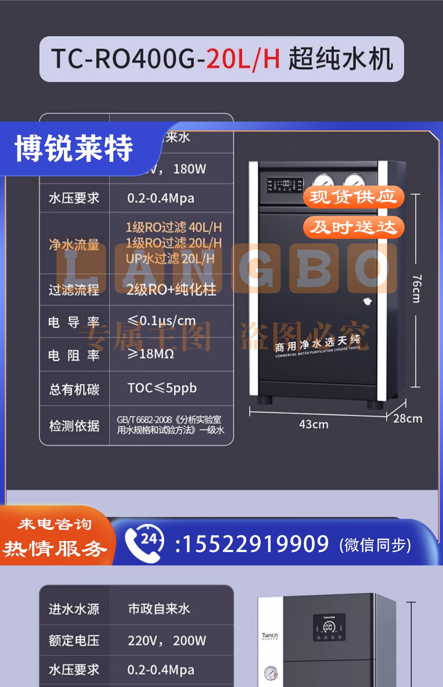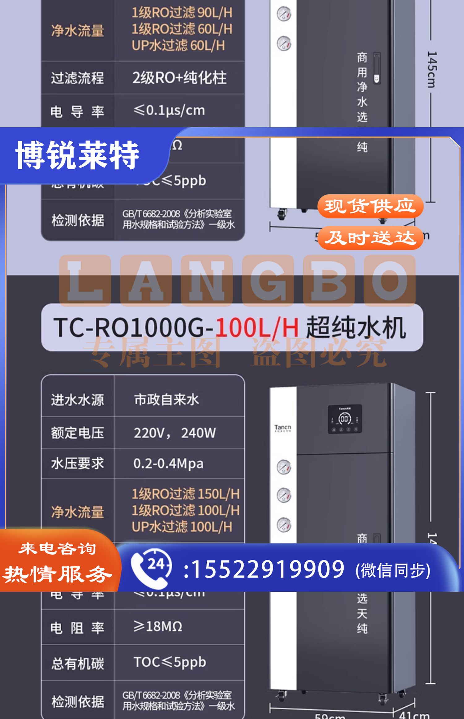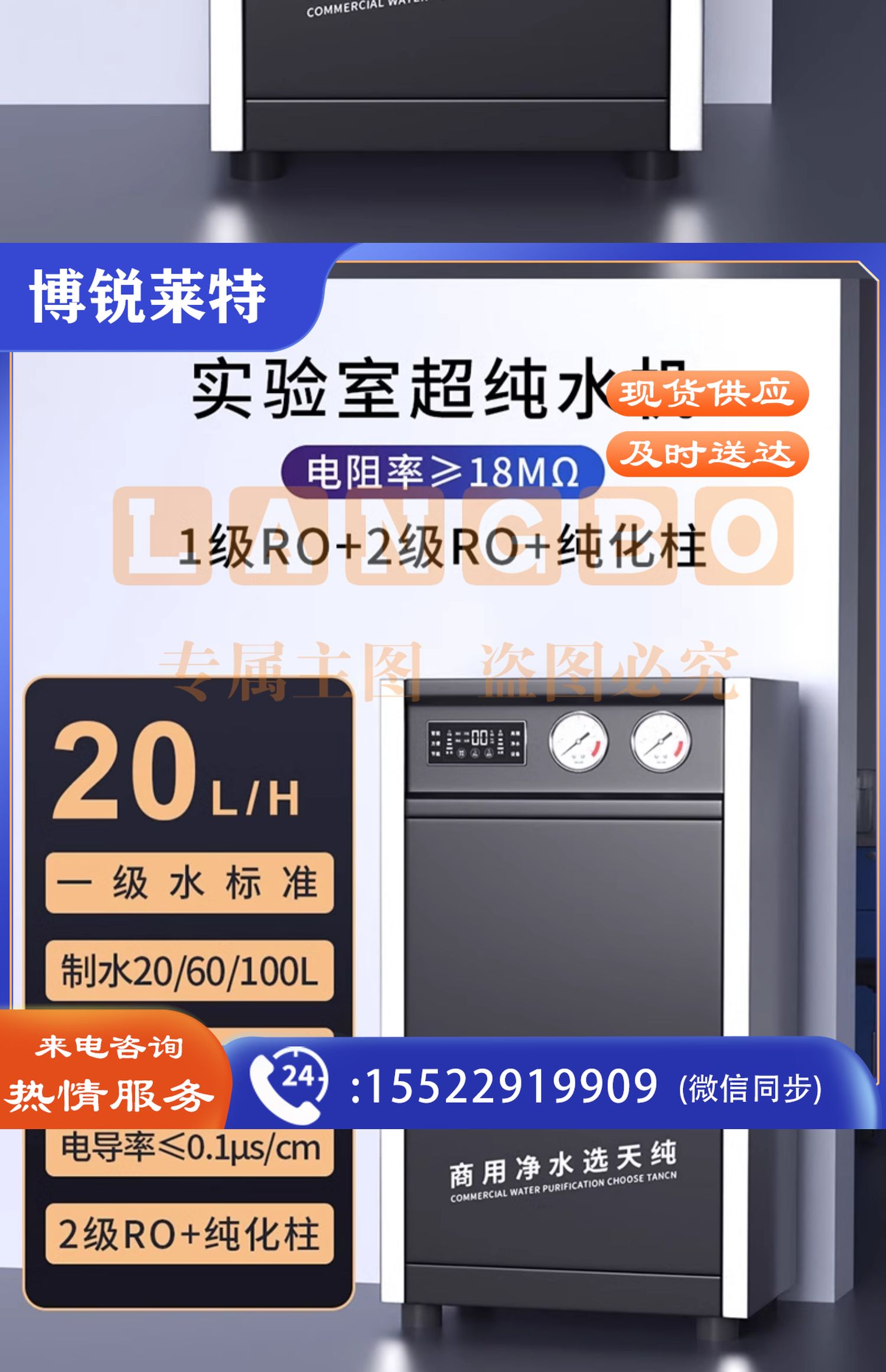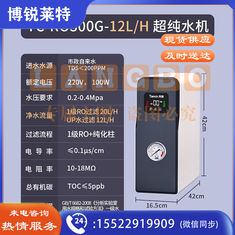 天纯实验室超纯水机反渗透一级水树脂去离子设备医院学校工业化验【一级水】60L/H实验室超纯水机