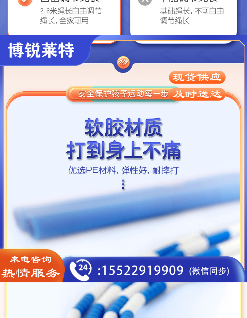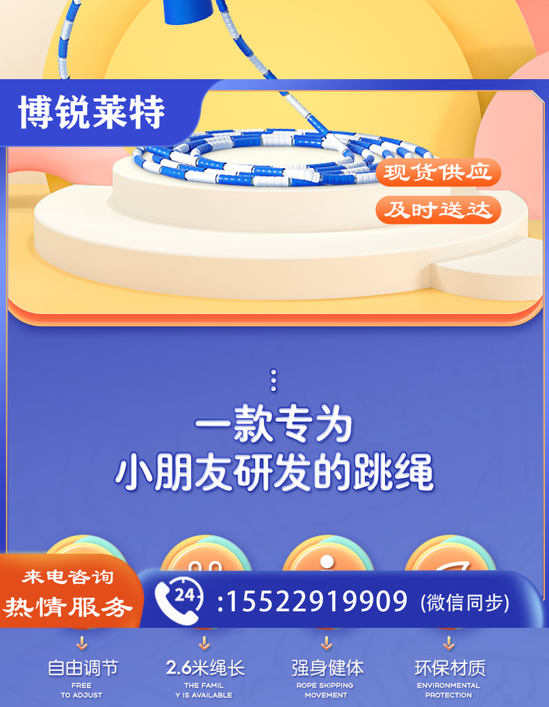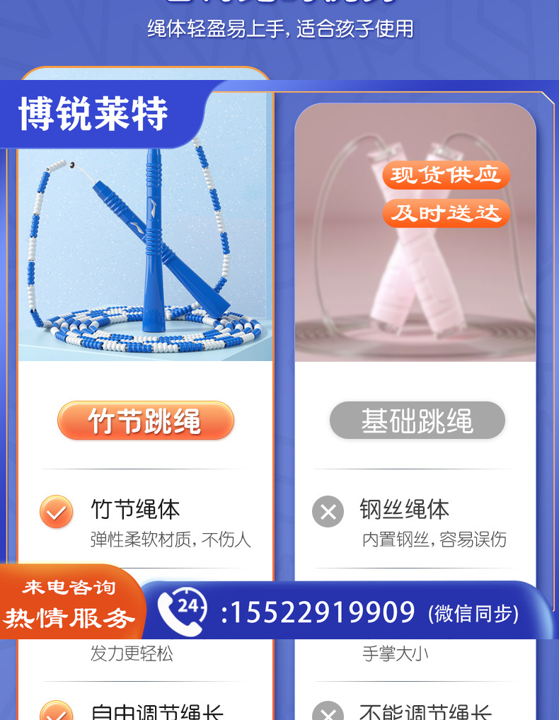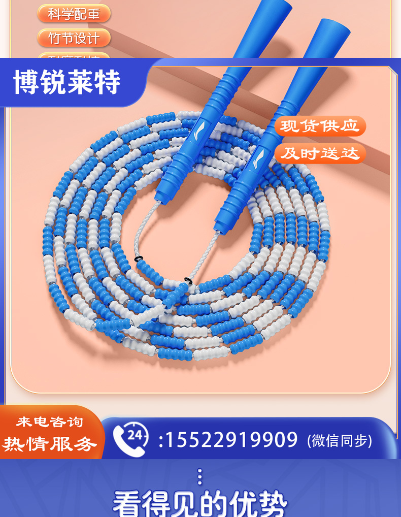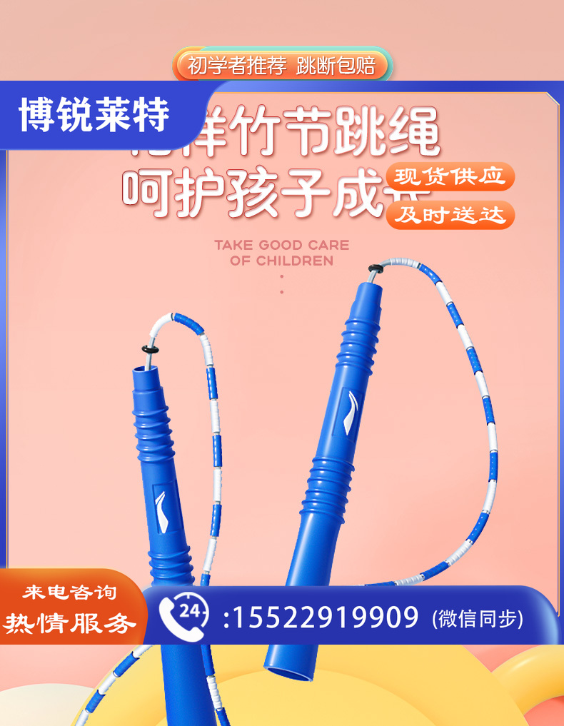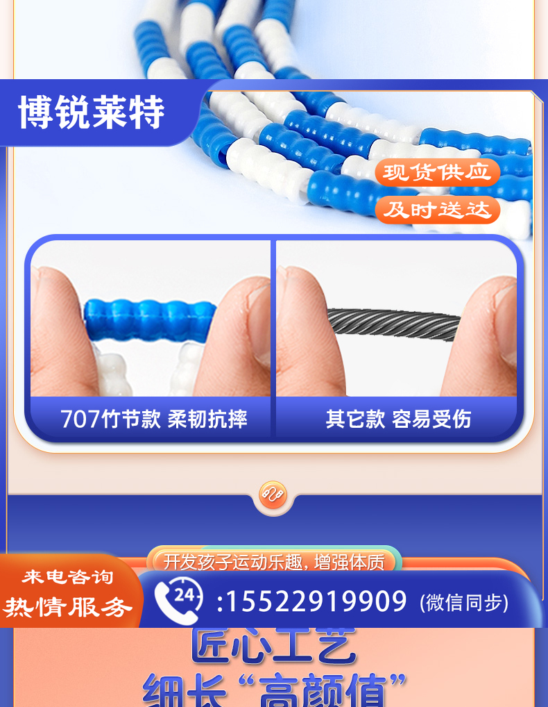 李宁(LI-NING)707儿童跳绳竹节成人有绳中小学生学校考试专业幼儿园健身珠节可调节
