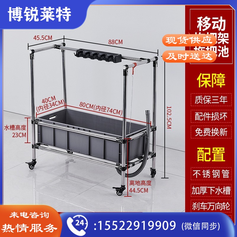 鸣固 ZJ3783不锈钢移动拖把水池落地式拖布墩布扫把卫生间阳台收纳架学校工厂 加长拖把池80盆 不锈钢5挂6钩其他防护用品