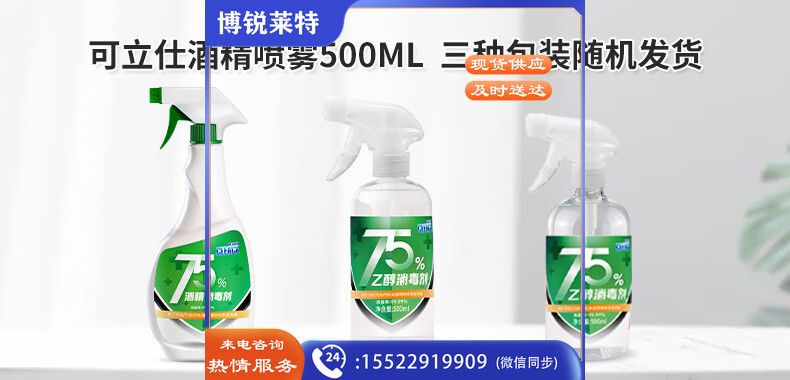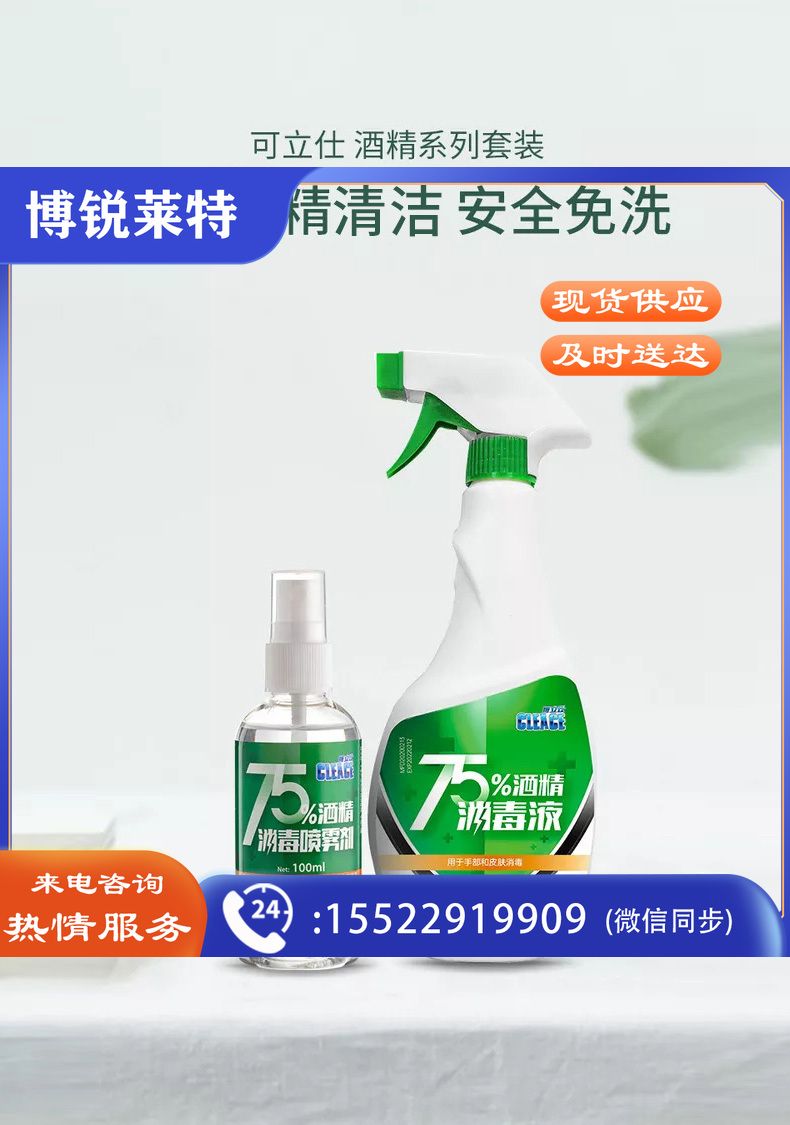 可立仕(cleace)75%酒精喷雾500ml+100ml 乙醇免水酒精消毒凝胶皮肤居家办公学校
