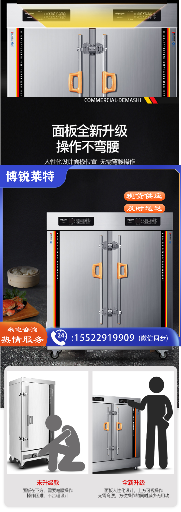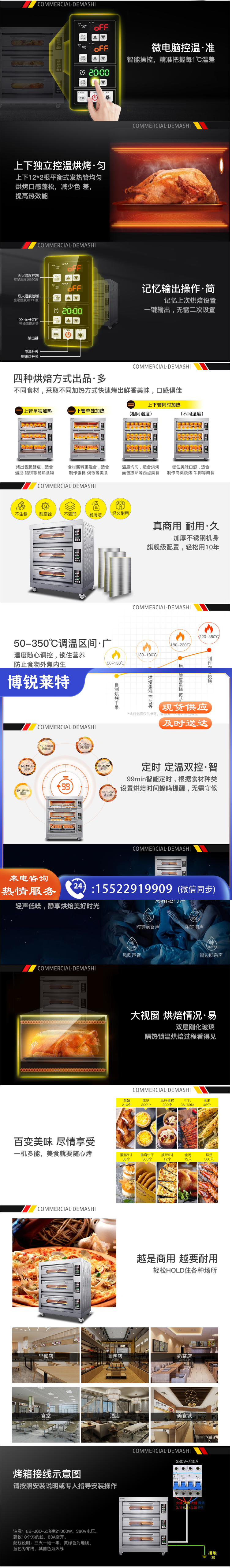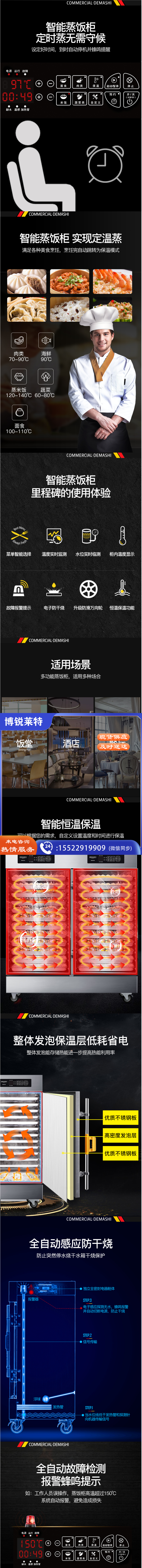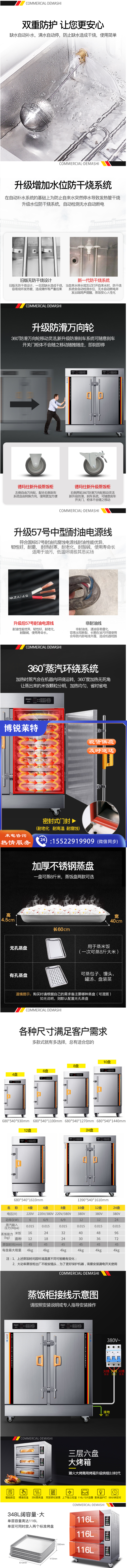德玛仕(DEMASHI) 双门蒸饭柜商用 学校企业食堂后厨套装(24盘蒸饭柜KZ-200D+三层六盘烤箱EB-J6D-Z)
