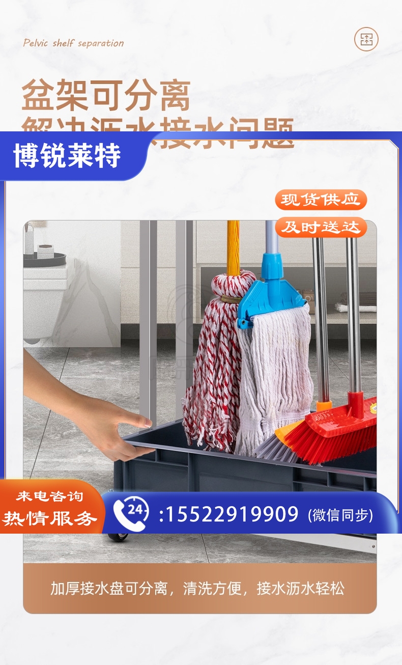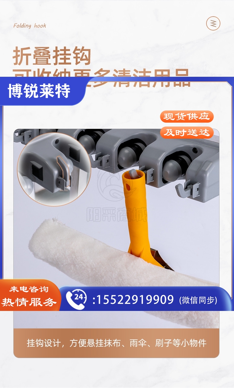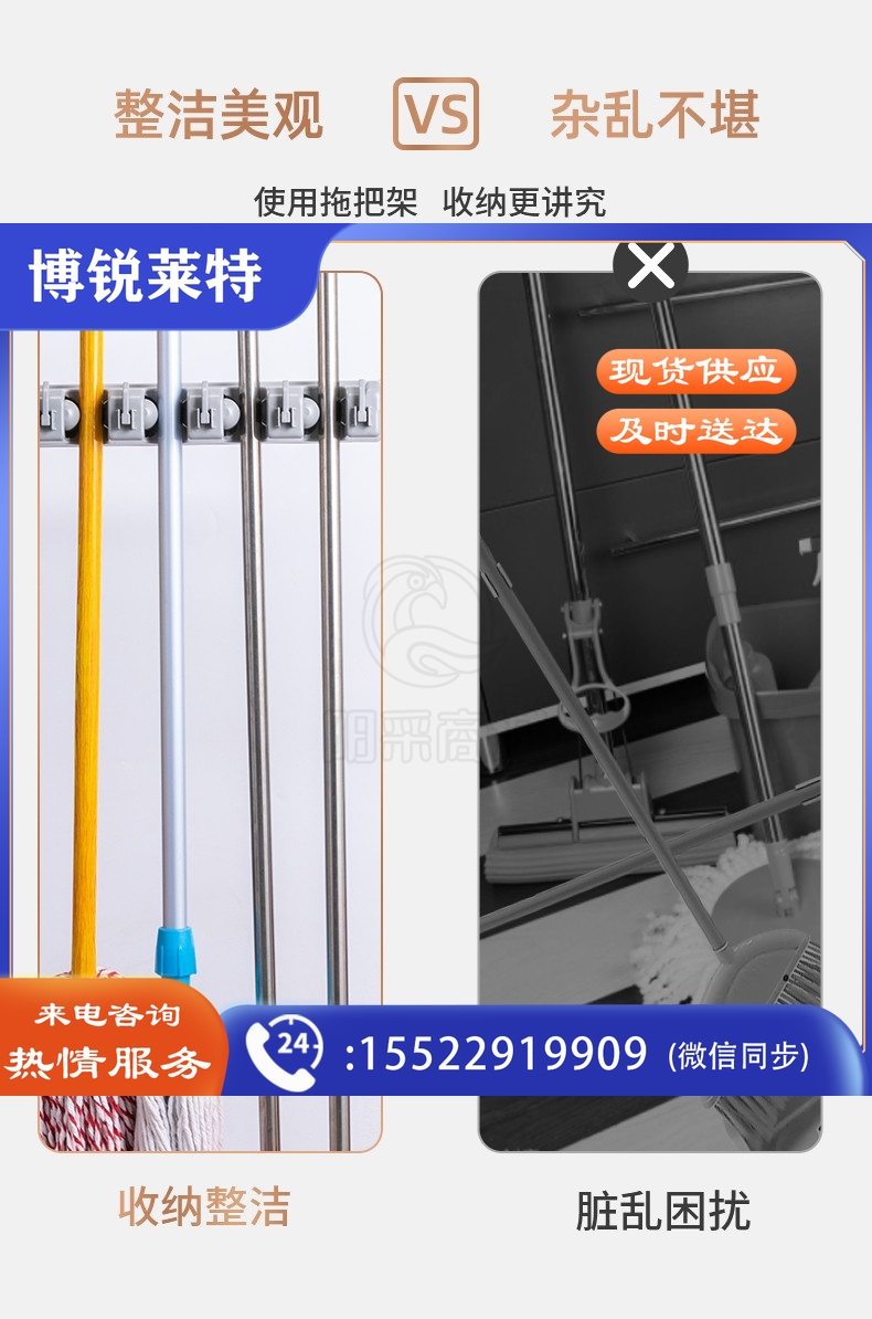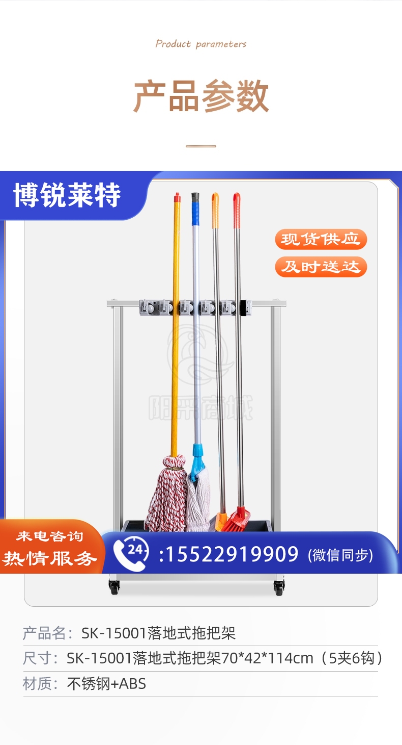 舒蔻 拖把架落地式 可移动后不锈钢扫把架学校卫生间收纳沥水架清洁工具墩布架5挂6钩