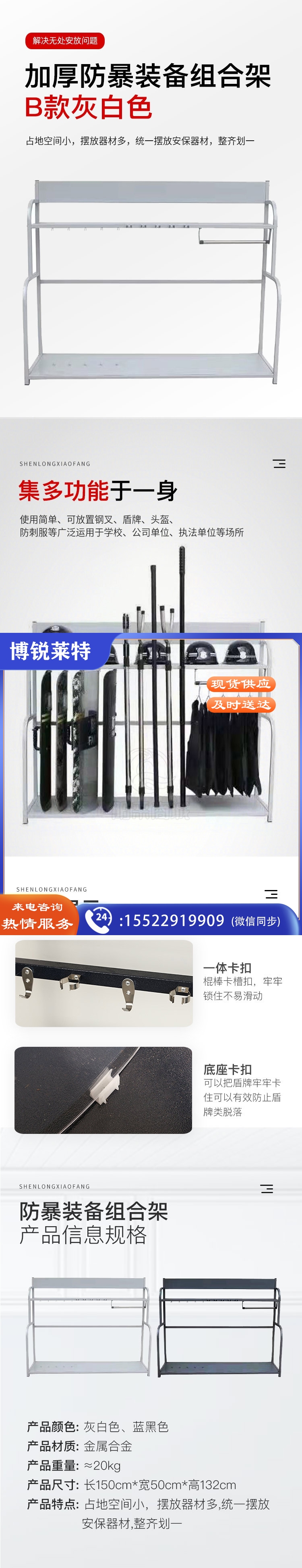 神龙 加厚防暴装备组合架 防暴器材柜 多功能安防装备组合架子 酒店医院学校幼儿园防暴架B款灰白色 厂家直发