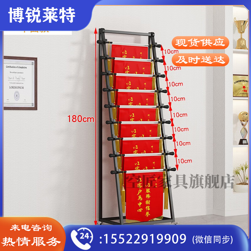 锦旗展示架落地多层可移动置物架学校公司医院荣誉展示专用陈 哑光黑长70*宽40*高180单面9层