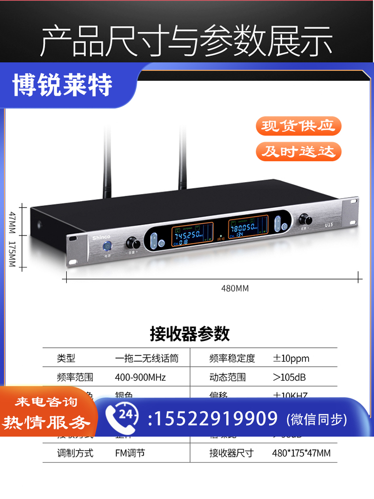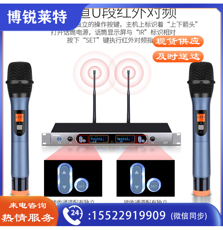 新科(Shinco)U15A U段变频无线麦克风 卡拉OK舞台演讲话筒学校会议KTV一拖二话筒