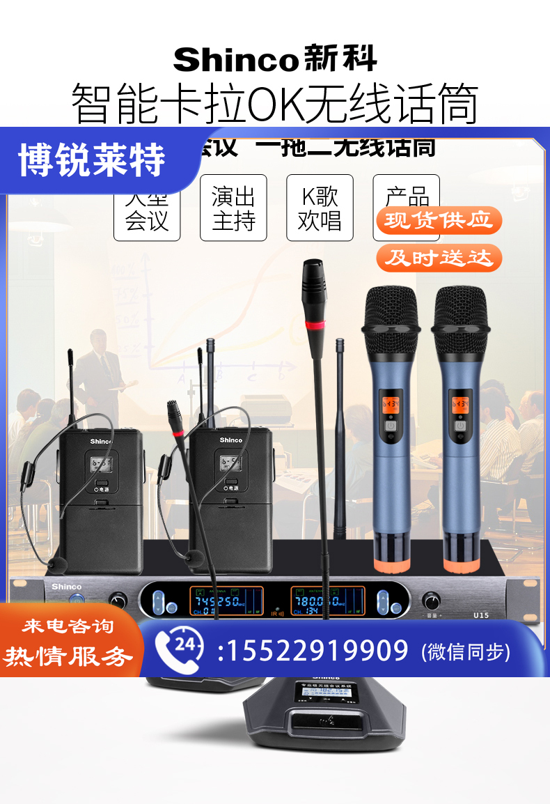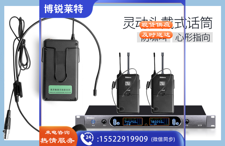 新科(Shinco)U15B 头戴版 U段变频麦克风 卡拉OK舞台演讲话筒学校会议KTV一拖二话筒
