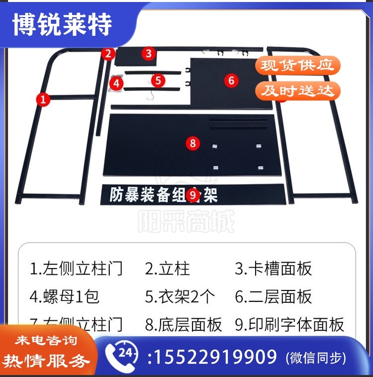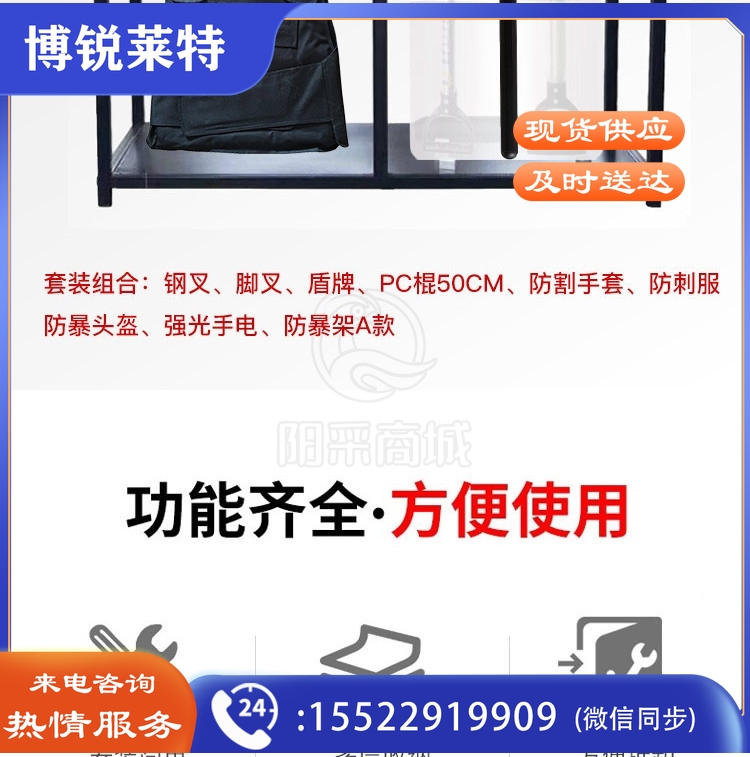神龙 安保器材防暴器械八件套学校幼儿园安保装备反恐防暴安防用品套装【8件套+A款组合架灰白色】厂家直发